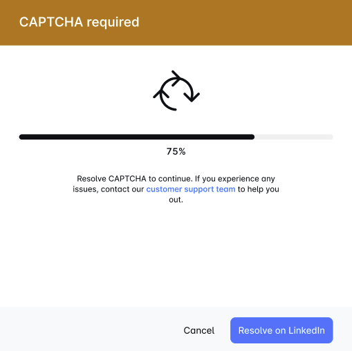 Encountering a CAPTCHA while setting up LinkedIn? 🧩 Simply click "Try by yourself," solve the puzzle, and enter the PIN to complete setup. We’re dedicated to making your Lead Bridge experience seamless. Enjoy! 🚀
