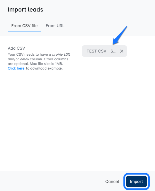 Adding new leads is a piece of cake when you have a CSV file ready. Hereโs how to do it: