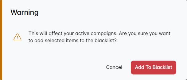 This will pop up if you have active campaigns and Lead Bridge will also blacklist the leads that are in these campaigns. So we are just warning you to make sure that you don't make a mistake.