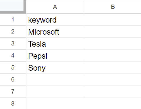 This is the information that your CSV file must contain. In this file, you need to have only one column with a 'keyword' written in the title. All values must be in this column.