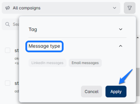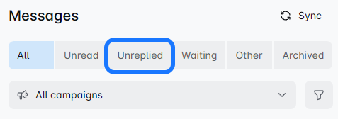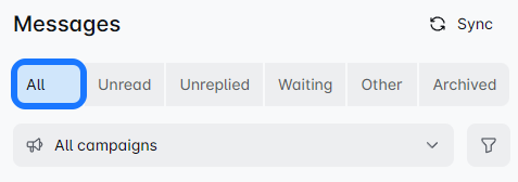 Once you connect your LinkedIn profile to the Lead Bridge, this filter shows your non-campaign-based messages. ❗ Messages sent before connecting your account won't appear here.