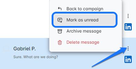 This is the default view of the inbox, where you can see messages from all the campaigns you’ve run on the Lead Bridge. You’ll also get a glance at messages from all three inboxes that the Smart Inbox merges: LinkedIn, Sales Navigator, and Email 📧.