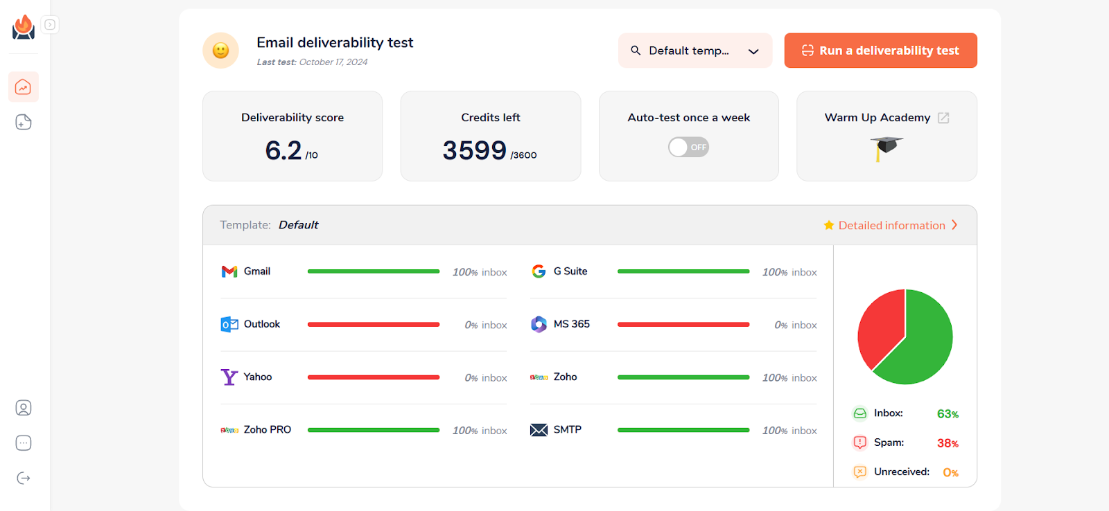 5. Run deliverability tests so you can check if your warm-up strategy is working or not. You can customize your templates and download a PDF deliverability report.